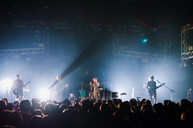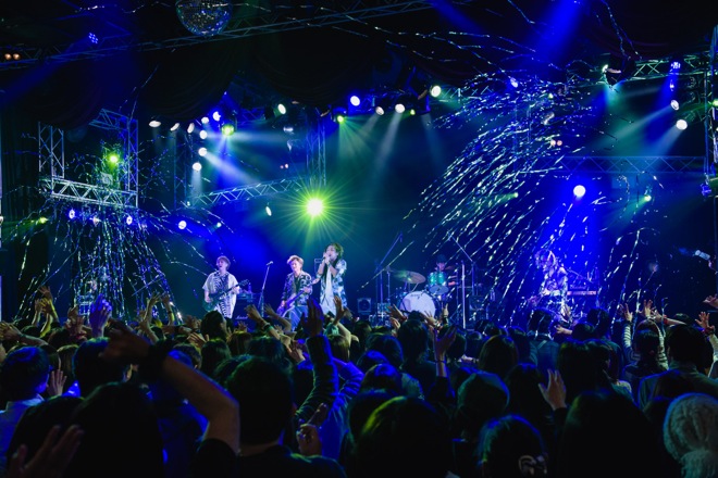 「このへんで聴いていただきたい曲があります。今回のアルバムに入っている中で唯一、昔からある「With…」という曲です。俺らが大阪から東京に出てくる時にできた曲なんですけど、その時々でWithの対称っていろいろ変わる気がしていて……。家族だったり、仲間だったり、メンバーだったり、ファンだったり。今日はその全部が1個でも欠けちゃいけないような想いでこの曲を届けられると思います」──月森