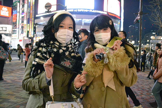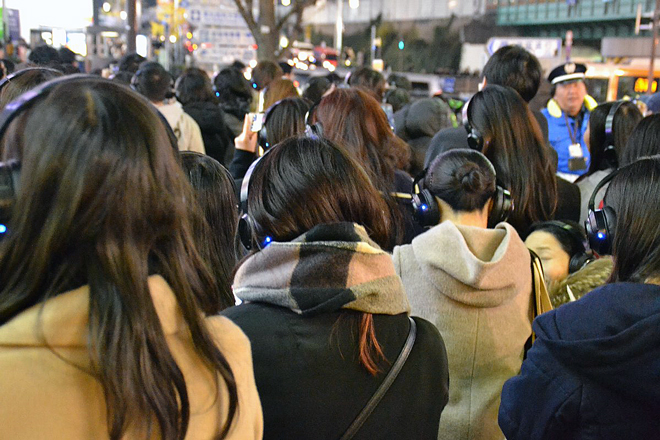 上映会終了後、集まった人たちのうち何人かに話を訊いてみたところ、ほとんどがこの上映会のために新宿に来たという熱いファンだった。その中で、PIERROTは“曲の世界観が伝わってくること、ファンの一体感”が魅力、DIR EN GREYは“ライブのカッコよさ、ステージの美しさ”が素晴らしい、と語ってくれたのは、楽しそうに身体を動かして楽しんでいた女子二人組。7月の『ANDROGYNOS』には2日とも参加したそうで、“両方のバンドの大ファンだから、この組み合わせは最高!”、“すごいイベント。まさかこんなことが起きるなんて、去年までは考えられなかった”と言う。そして“屋外イベントは以前PIERROTで参加したことがあったけど、今回はヘッドフォンでいい音で楽しめたのがよかった”とヘッドフォンの音質を絶賛しながらも、“途中で外してみたけど、それも楽しかった。新宿の街中、というのが楽しい”とコメント。また、“ライブは最高に楽しいけど、こういうイベントは気軽に来られるから楽しい”、“色々な友達と一緒に見られるのがいい”などと話してくれた。