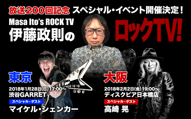 毎週土曜日深夜にBSフジで放送中の『伊藤政則のロックTV!』が2018年2月10日放送で200回目を迎えるにあたり、東京と大阪でスペシャル・イベントが開催されることが決まった。スペシャル・ゲストとして、東京はマイケル・シェンカー、大阪はLOUDNESSの高崎晃の出演が決定、MCはもちろん伊藤政則だ。