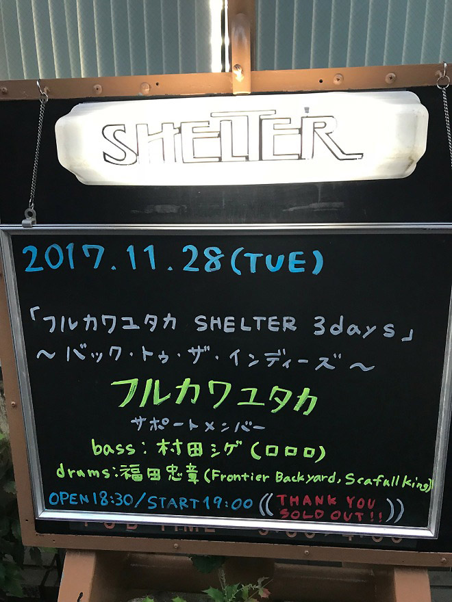 ■<「フルカワユタカ SHELTER 3days「バック・トゥ・ザ・インディーズ」>2017年11月28日(火)@東京・下北沢SHELTER