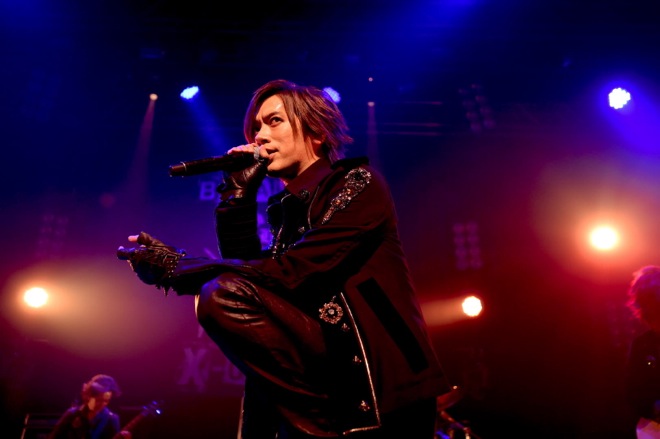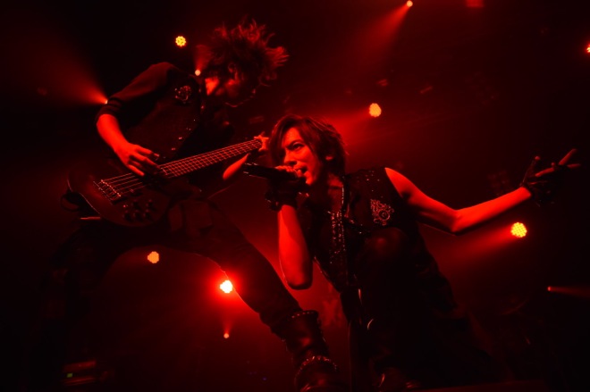 ライブは10周年記念スペシャルアルバム『X (クロス)』のスペシャルコラボレーション盤収録曲「GOD」で幕を開けた。DAIGOが神と崇めるHYDEへの尽きない愛を歌ったミディアムでゴシックなナンバー。AKIHIDEの荘厳で切ないギターソロも印象的だ。DAIGOが「東京、跳べ!」と叫び、続いて投下されたのは「Kamisori」。鋭利なサウンドに磨きがかかり、AKIHIDEが上手で熱いギターを奏でると下手でDAIGOとSHINPEIが隣り合わせでフロアを煽る。超満員の客席は前半から熱気が充満。「Everlasting Luv」ではオーディエンスの歌う声が響き、ステージ先端で手を伸ばして歌うDAIGOにひときわ大きな歓声が飛んだ。