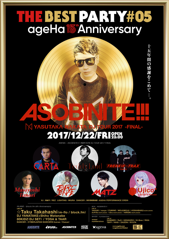 ageHa’s 15th ANNIVERSARY “THE BEST PARTY #05” feat. ASOBINITE!!! -中田ヤスタカ DJ TOUR 2017-