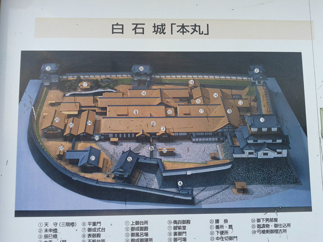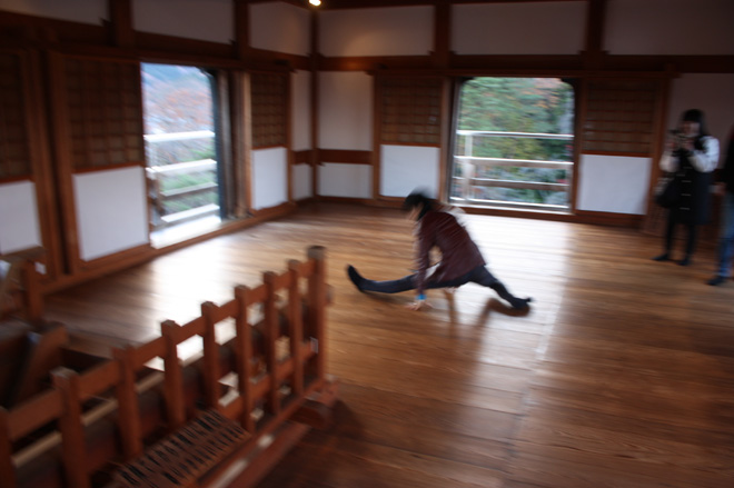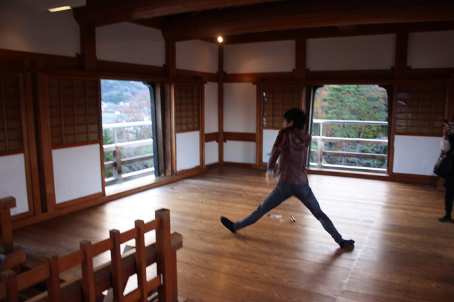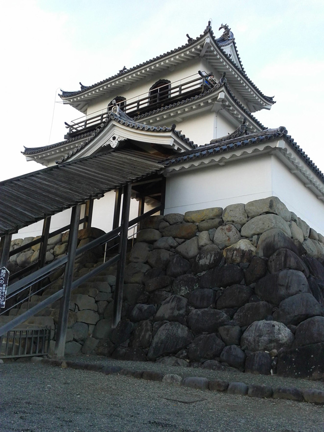 当時は本丸を石垣で囲み、大きな本丸御殿、そして大きな二の丸、たくさんの曲輪、高さのある土塁、それを全方向に水掘が囲み、支城とは思えないほどの風格であったが、幕末にそのほとんどが解体されてしまう。残ったのは土塁のみという状態だったところから復元の話が持ち上がり、石垣から復元したんぞという素晴らしい計画のもと、あれよあれよと天守まで木造復元に。素晴らしすぎる。この天守も幕府に遠慮して「三階櫓」と呼ばれていたが大きさからも本丸の一番目立つコーナーに建てられたことを考えると完全に天守である。現在は天守の下にある大手二階門と菱御門も復元されている。面白いのはこの大手二階門から巽櫓があったコーナーまでが流線型になってカーブしていることだ。日本の城は基本的に角と角を繋ぐ四角を縄張りにして作るのに対し、こういったデザインはとても斬新だ。本丸はこの部分だけがカーブになっており、後のコーナーは四角く折れている。ここの石垣を幕末の時に全部撤去したのだから相当な作業だったと思うが、壊さなきゃいけない政治や歴史が当時はあったのだろう。しかし現代になり、だけどもう一度、それでももう一度白石城をという市民の想いが繋がり、歴史が戻って来たことを考えると実に感慨深いものがある。正直に言えば幕末の撤去によって城の面影はほとんど失われてしまっていた白石城だったが、そこに完全なまでの復元をした天守と門が二つ完成。そのギャップ感が凄い。やはり注目すべき点は三階櫓の内装だ。まず天守入り口に付けられた石段、そしてそこに石段を登るのに雨に濡れてはいかんとして付けられた屋根、ここに萌える。日本の天守台にもこういった石段が付いてる場合があるが、考えてみたら雨を凌ぐ為に屋根が付いていてもおかしくないわけで、もしかするとどんな城も石段の上はこういった屋根伝いになっていたんじゃないかとイマジンするとたまらない。天守は武器庫として使われていたそうだが、中はとても広く、三階櫓にしちゃでか過ぎるほどだ。この時代にお約束の急な階段も健在。最上階は手すりになっていて外に出れる。木の床も滑りが最高で、私は思わずライブでやるパフォーマンスの一つである股割りをキメてしまった。すべすべした木のフローリングは股割りをしないわけにはいかない。今までも松本城、掛川城、上田城、高知城、松山城、備中松山城、弘前城、犬山城、二条城、金沢城、丸亀城、姫路城、などの天守や櫓や御殿などでいつも股割りをしてきた。ほとんどでやってんじゃねえか。二条城だけは怒られた。伊勢丹の階段の踊り場でも毎回やっている。外で中島卓偉を見かけた時にキョロキョロしていたら、それは股割りをやるにあたり、誰も見てないところで股割りをキメたい、そのタイミングを見計らっているところである。