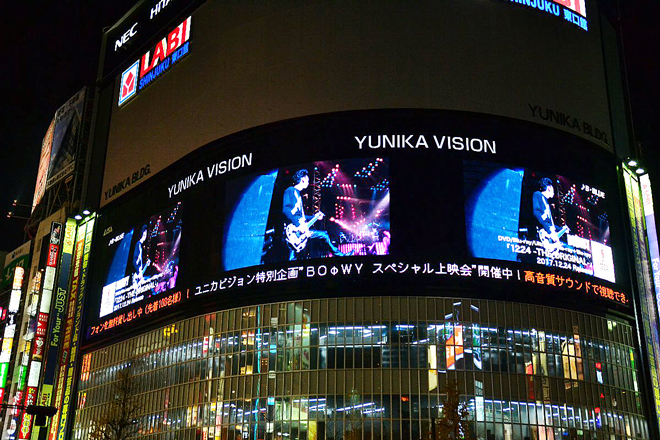 2017年12月24日(日)、数多くのアーティストの上映会が開催されていることで注目を集めている新宿のユニカビジョンで、「BOØWYスペシャル上映会」が行われ、集まった大勢のファンを熱狂させた。