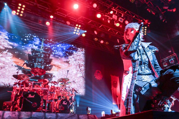 観客たちを煽るNao-A、掲げた意志を示すように、彼らはバンド名を冠した「戦国時代 -The age of civil wars-」を叩きつけた。背景に映る五重塔は、彼らの陣地。まさに守るべき地を背負いながら、4人は未開の地へ魂を燃えたぎらせ突き進んでゆく。観客も身体を揺さぶらずにはいられない。「揺らせー!!」という煽りから重厚な音の翼をはかめかせ、彼らは「常翔」で飛び立った。