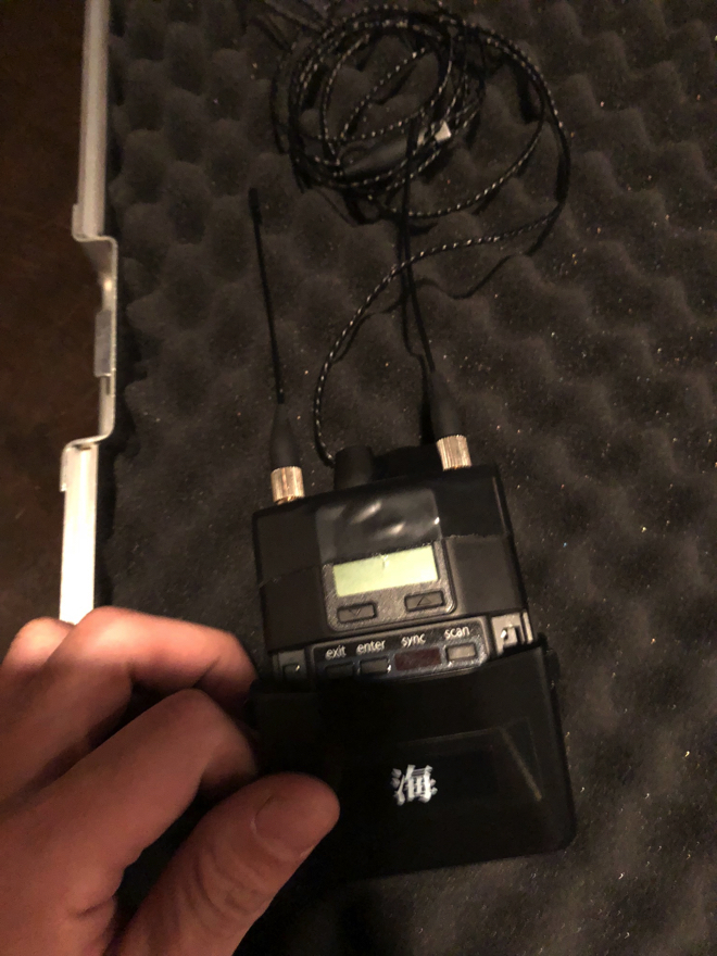 すごい簡単に言えばイヤホンなんですが、いわゆる普通のイヤホンとは全くの別物です。これでライブ中に自分が聞きたい音をワイヤレスで飛ばしてもらって聴きながら演奏しています。