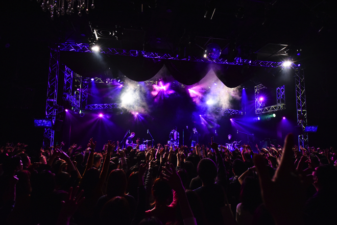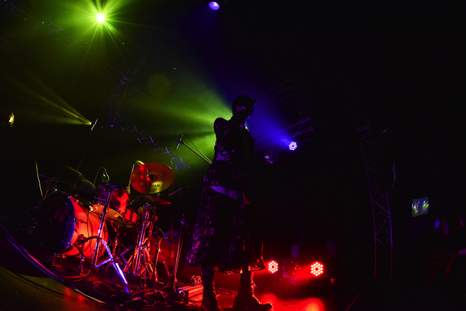 ミニアルバム『R』のリリース直後、藤井麻輝がウィルス性肺炎の悪化で入院しライブの延期など活動をストップしていたなか、この日3ヶ月ぶりに元気な姿を見せた。ライブは重厚なSEの後「The Victim」「B612」と続き、一気に濃密な空気が会場を包み込む。久々のライブのせいか今回はMCも多く、途中「1年に1回くらいは犬のことを思いだしても」と、亡くなった相棒・森岡賢のヴォーカルデータを使ったパフォーマンスも披露する。