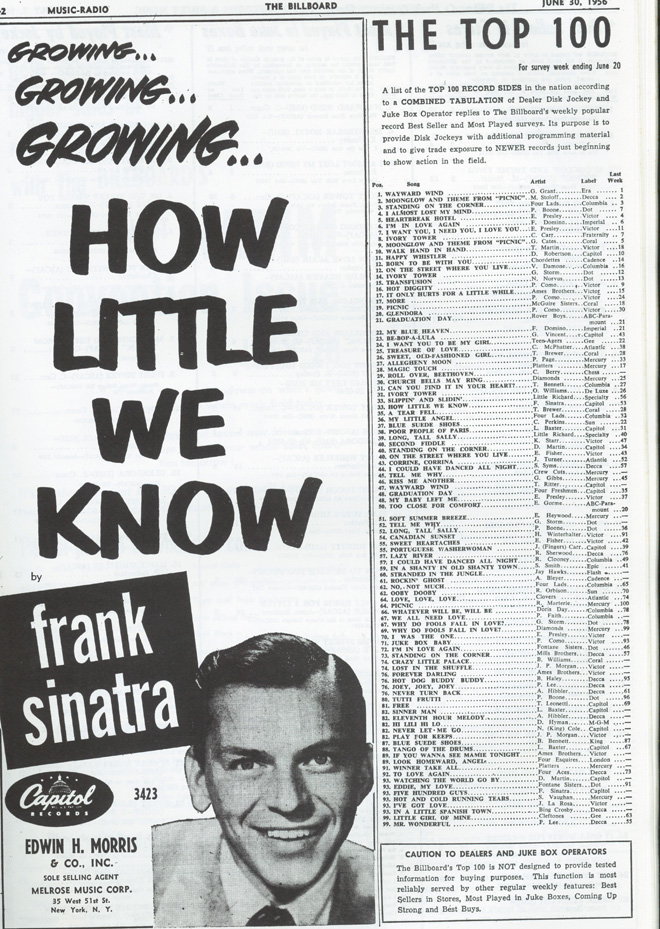 ▲Billboard56年6月30日付THE TOP 100/JOEL WHITBURN PRESENTS THE Billboard POP Charts 1955-1959 from Mike’s Library