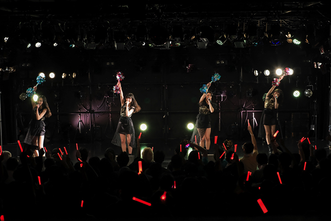 また、今回より10月25日にリリースされた「PERIOD. BEST 〜オトナニナルンダカラ〜」「PERIOD. BEST 〜キメテイイヨワタシノコト〜」のイメージをオマージュして制作された新衣装も披露。黒のレースを纏ったタイトなスタイルにゴールドのポイントが際立つ品格よくエレガントさ漂う衣装となっている。