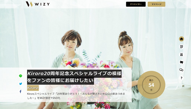 Kiroroのデビュー20周年を記念したスペシャルライブ<20年間ありがとう!~みんなが聞きたいキロロの歌あつめました~>が本日7日、15:00よりGYAO!で無料生配信される。このライブの模様をDVD化するプロジェクトが共創・体験型プラットフォーム「WIZY(ウィジー)」にて発表された。