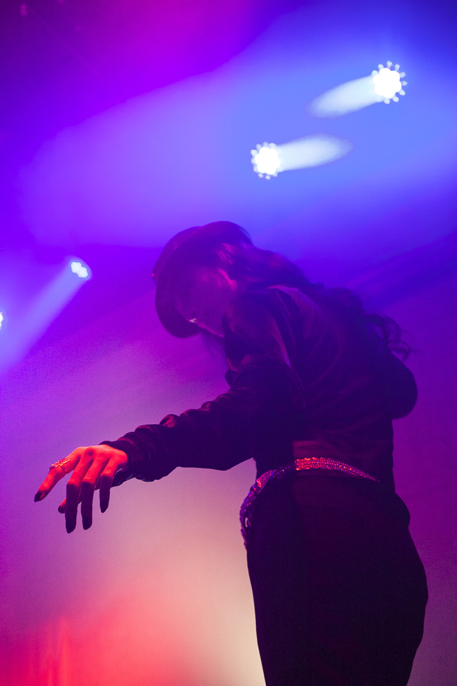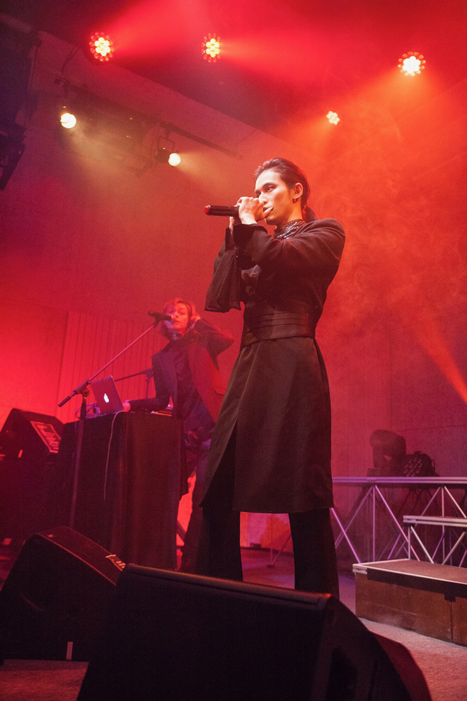 良いムードを保ったままライブは終盤を迎え、クラブっぽい歌中とディスコ感を湛えたサビ・パートのコントラストが光る「JUST YOUR DREAM」に続けて、「LEONEILとYOW-ROWの出会いになった曲です」という言葉と共に本編のラスト・ソングとして「ISOLATION」が演奏された。「ISOLATION」では、ステージ下手で演奏していたYOW-ROWも定位置を離れてLEONEILと2ショットでツインボーカルを決め、熱いラップを披露し、さらにフィジカルなパフォーマンスを展開。サイバーなサウンドとキャッチーなメロディー、LEONEILとYOW-ROWが織りなす華やかなステージングの応酬にオーディエンスのボルテージはさらに高まり、WALL & WALLの場内は熱気と一体感に溢れた盛り上がりを見せた。