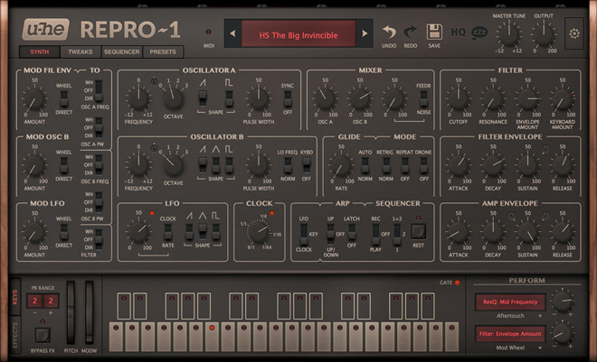 Reproは、オリジナルとなる、とあるビンテージアナログシンセサイザーのサウンドを忠実に再現する「コンポーネント・レベル・モデリング」を採用し、抜けのよい極太のアナログサウンドに加え、エフェクターやアルペジエーター、ステップ・シーケンサーも装備した、比類ないバーチャルアナログシンセサイザー。
