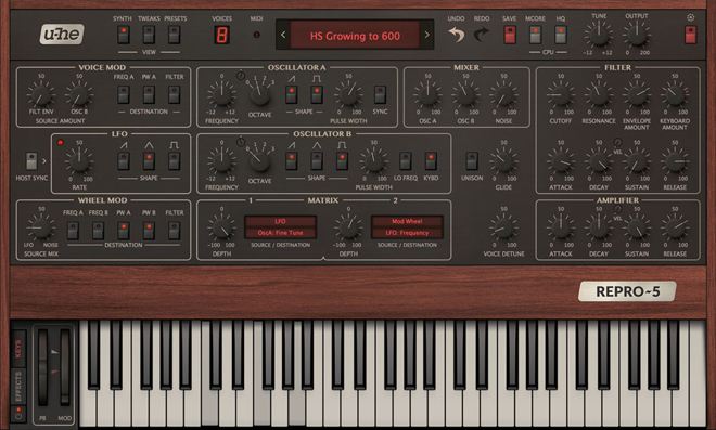 また2017年12月に公開された8ボイス・ポリフォニックバージョンの「Repro-5」は、ユーザーリクエストの多かったポリフォニックバージョンで、Repro-1と共通のDNAを持つ究極のアナログサウンドに新しいフレーバーを取り入れた、あの名機のあのサウンドがコンピュータ上に再現されるバーチャルアナログシンセである。