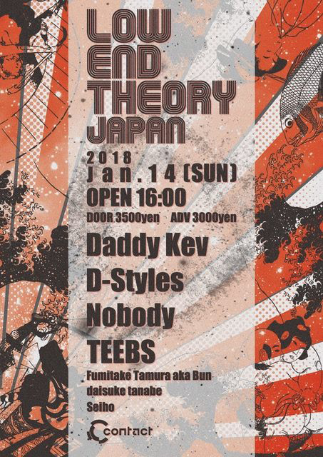 主宰者であるダディ・ケヴを筆頭に、D-スタイルズ、DJ ノーバディのレジデントが一堂に会す記念すべきサンデーアフタヌーンとなるのが、2018年の新年を飾るLow End Theory(R) JAPANだ。日本では2014年の春以来となる、ご本家LAのお墨付き、堂々にして念願のオフィシャル開催実現であり、2017年本国アメリカにおける設立11周年を経てますます勢いを増すフル体勢での来日公演となる。