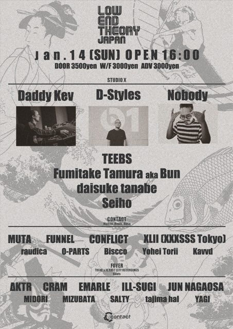 日本からのゲストにはサポートには総帥ダディ・ケヴ直々のラブコールにより、Fumitake Tamura aka Bun、daisuke tanabe、Seihoなど本国Low End Theory(R)のステージでオーディエンスに鮮烈な印象を残した日本勢ビートエクペリメンタリストたちが集結することになった。LAと東京を繋ぐ鉄壁布陣がステージを色濃く染め上げることになるだろう。