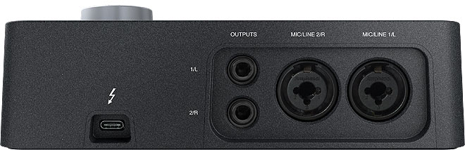 MacでもWindowsでもThunderbolt 3バスパワーによって駆動するので可搬性に優れ、わずらわしい電源アダプターも不要。コンパクトでハイパワーな音楽制作環境が手軽に構築できるインターフェイスとなっている。本体サイズは179.9×25.2(フロント)/46.7(リア)×121.1mm(W×H×D)、本体重量は630g。