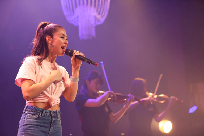 4人のダンサーを従えて披露された「stardust」「CANDY」などアッパーなダンスチューンでは、しなやかでダイナミックな身体の動きだけでなく、指先や視線の繊細な動作にも目が惹かれた。中でもアグレッシヴな「RED」からミドルバラードの「AM2:00」への流れでは、突き上げた拳をそっと開いて下ろす腕の動きまでもが美しく、曲と曲の間すらも魅せられた瞬間だった。