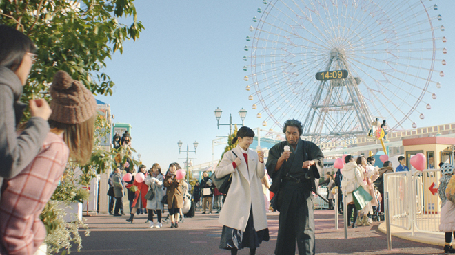 持田香織が侍とデート、“バレンタインジャンボ”CMにELT登場