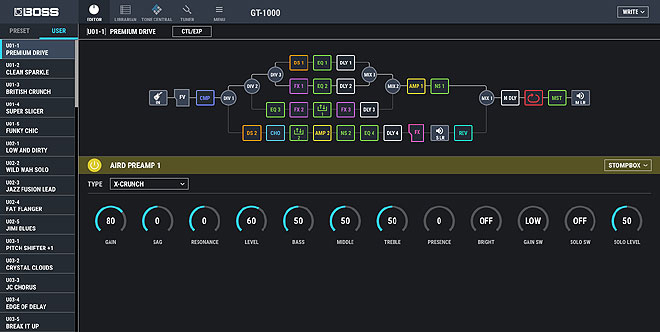 スマホやパソコンと連携できるBOSSエフェクツ・プロセッサーのフラッグシップ「GT-1000」