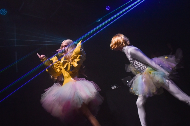 そんな中で行われた初の来日ショーケースでPoppyは、貴族を彷彿とさせる黄色の衣装を身に纏って登場。怪しげなダンサーと共に計8曲を歌唱した。早耳の著名人、業界関係者も多くみられた中、Poppyワールド全開のパフォーマンスを行った。誰もがコンピューターの中かのような異次元に迷い込むような、1時間弱の公演だった。