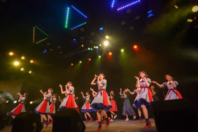 ライブ後半で初披露された新曲「Friday Night Party」は、50’s ROCK、ロカビリー調とでもいうべき懐かしくもキャッチーなサウンドに、イマドキのJK用語、SNS用語などを多用した非常にノリのいいパーティーナンバーとなっている。「今まで聞いたことないような曲」「新鮮でおもしろい」「キャッチーですぐ耳に残った」と初披露後の観客の評判も上々だ。