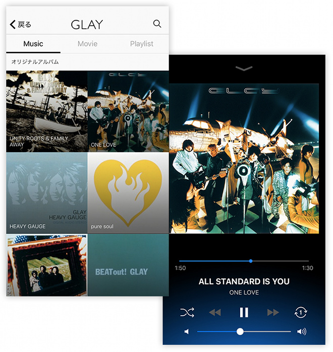 今回リリースされるアプリはアーティスト特化型のアプリとして内容の充実ぶりに重きが置かれており、GLAYのデビューから現在までに発売したすべての音源(※)や、100を超えるミュージックビデオが、月額制ストリーミングサービスで聴き放題そして見放題となっているとのことだ。