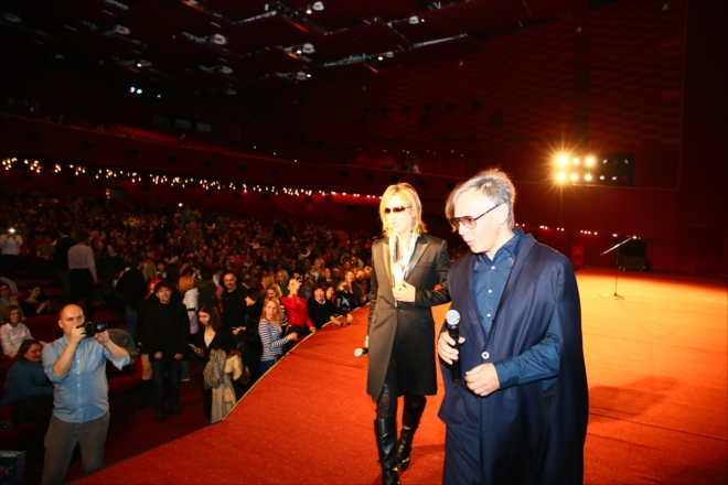 ▲モスクワで上映された「WE ARE X」の舞台挨拶にて、YOSHIKI友人のムミー・トローリ(Mumiy Troll)のシンガー イリヤ・ラグチェンコと