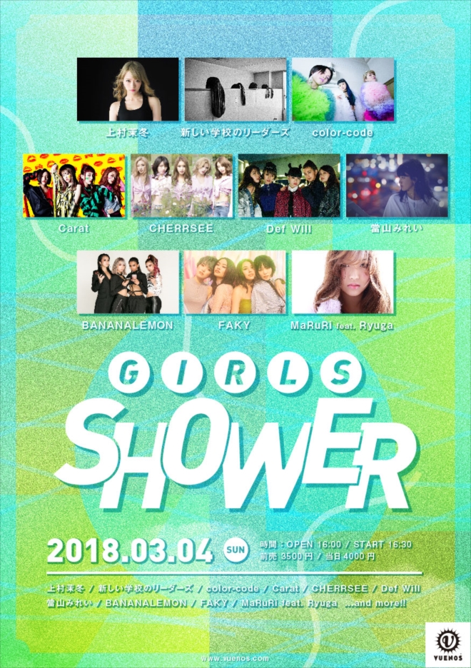 これからの活躍に期待がかかる日本の女性アーティストが一同に会するイベント、<GIRLS SHOWER>が渋谷VUENOSで3月4日に初開催されることが決定した。