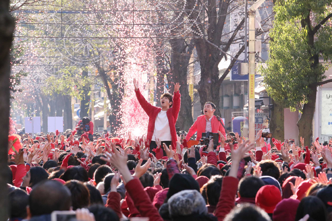 本CMは、ゆずの始まりの地として知られる伊勢佐木町を舞台に、カメラ13台に加えクレーンやドローンによる空撮などによって撮影が行なわれたもの。ゆずの2人と、公募で選ばれたゆず2018のメンバーが一緒に創りあげた応援ソング「うたエール」を大合唱する姿が収められている。