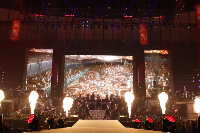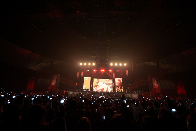 アニメ『進撃の巨人』の世界観に寄り添った最新アルバム『進撃の軌跡』をひっさげ、昨年7月から海外公演も含め、自身史上最大の全国ツアーを行なったLH。今回の凱旋公演はツアーに区切りを付けた後の、LH全体を振り返ったお祭り的な立ち位置での公演だ。LHが横浜アリーナで公演を行なうのは2012年の<Revo Linked BRAVELY DEFAULT Concert>以来5年ぶりとなる。
