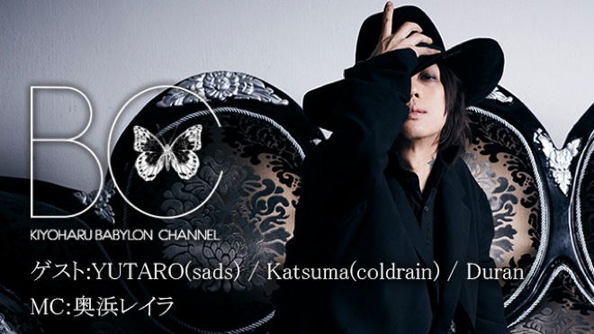 清春の公式ニコニコチャンネル『BABYLON CHANNEL vol.13』が2月28日、ゲストにYUTARO(sads)、Katsuma(coldrain)、DURANを迎えて放送される。