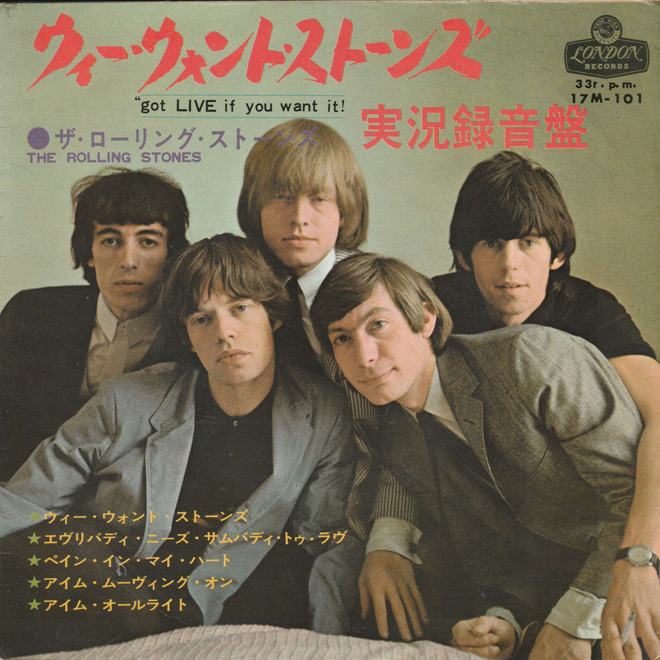 ▲65年11月20日発売の日本盤7インチEP(コンパクト盤 コンパクト・ディスク/CDとも称された)『ウイ・ウォント・ストーンズ 実況録音盤』 from Mike’s Collection