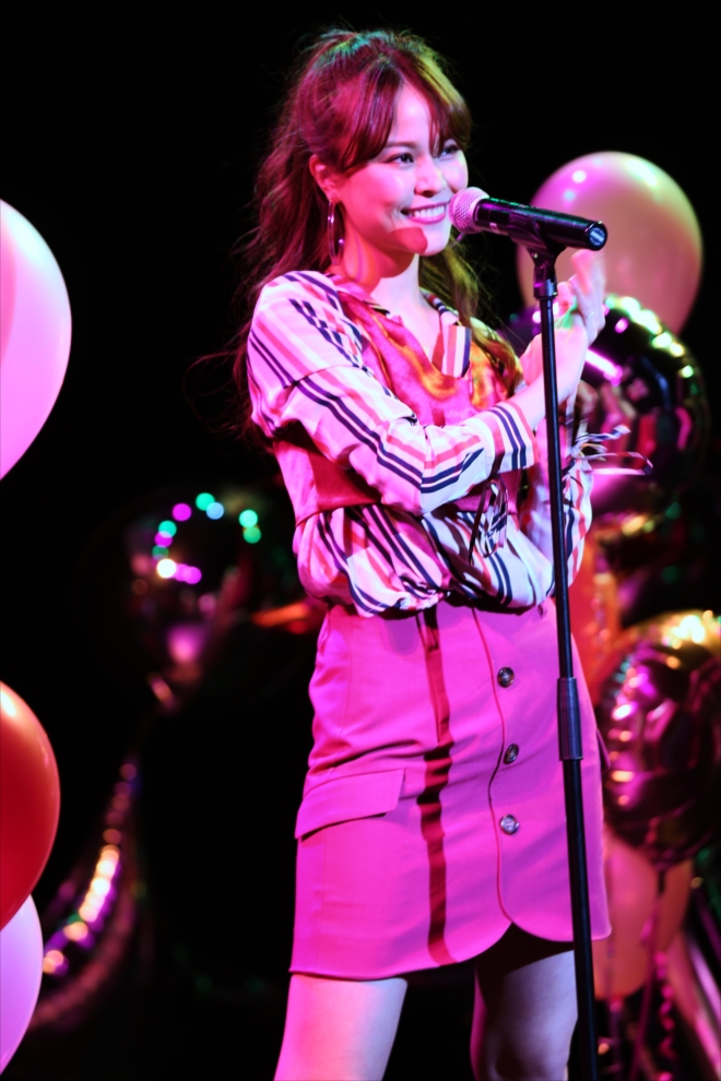 シンガーとしても頭角を現してきたMiracle Vell Magic。今回は<I AM READY>と題し、午後と夕方の2部に分けてライブを行った。注目すべきポイントは、今までのMiracle Vell Magicを惜しみなく全て出し切ったことだった。ライブスタートと同時にピンク色の衣装で登場したMiracle Vell Magicは、観客からの「可愛い」の声ににこやかに応えながら、挨拶代わりに早速最新曲「G-I-R-L」を披露する。人気曲「Up To You」も続けざまに歌い上げた。ステージにはピンク一色で彩られた幾つものバルーンが飾られガーリーな空間で、Miracle Vell Magicが高らかに歌い上げる英語歌詞のナンバーを盛り上げるにはぴったりの演出だった。