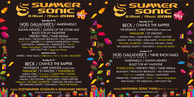8月18日(土)、19日(日)に東京と大阪で開催される<サマーソニック 2018>の第4弾出演アーティストおよび日程別ラインナップが発表となっている。