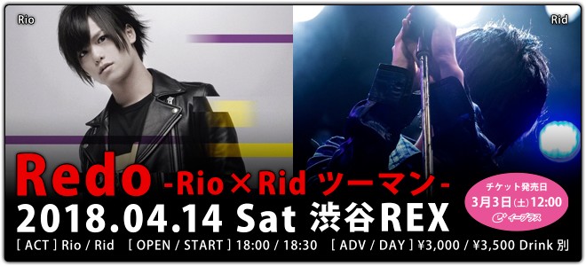 二人のライブ共演は、2016年2月に開催された歌い手Rioとしてのラストライブ<Re:start>以来。当時Ridは「もう二度とRioくんとこうやって歌う事はないのだろう」といった言葉と共にステージ上で泣き崩れた過去もあり、今回のイベントでの再会は本人達にとっても感慨深いものとなりそうだ。