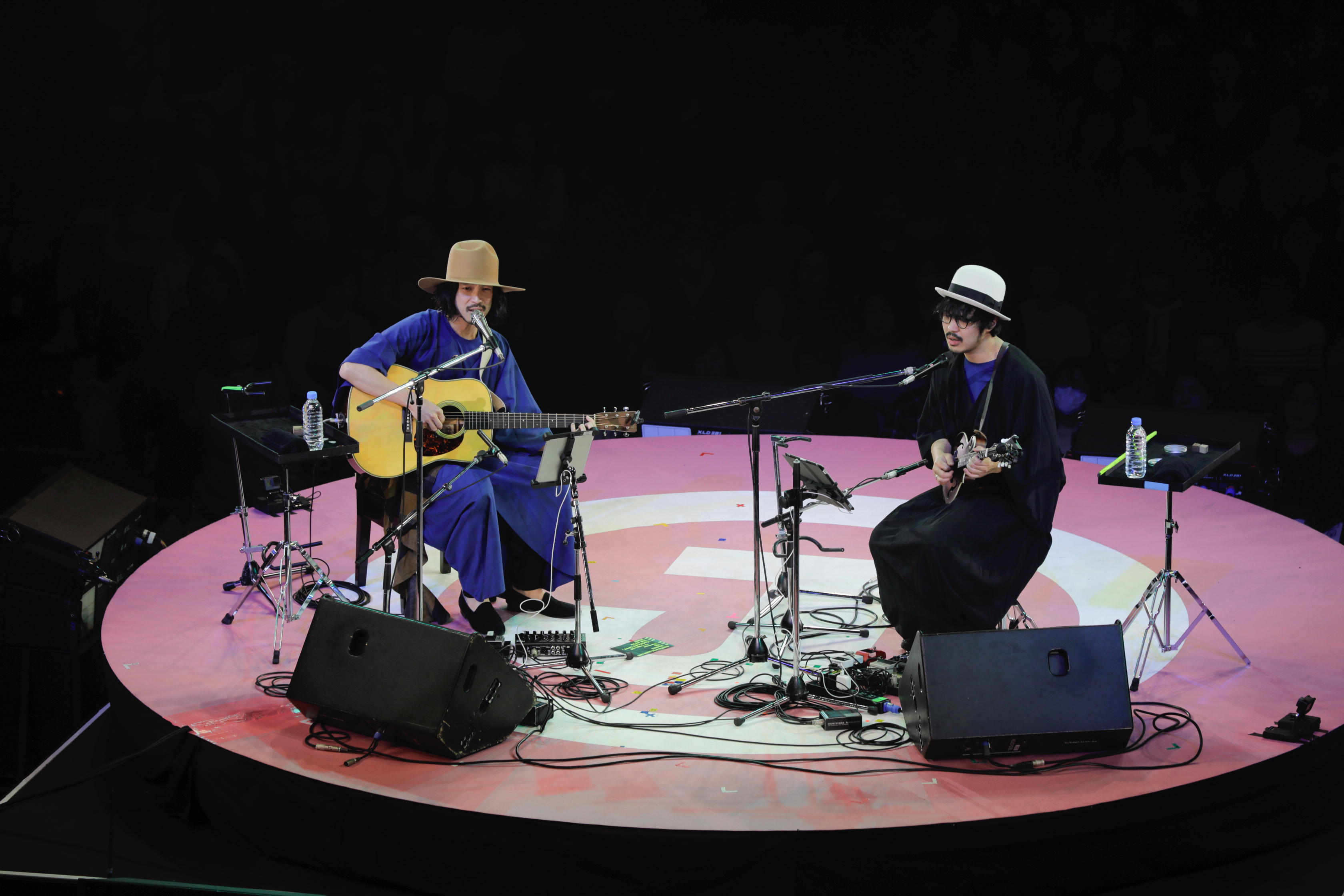 ビートルズ「Black Bird」のカバーからスタート。2本のギターとふたつの声が織りなす美しさに、両国国技館中のオーディエンスがうっとりと聴き惚れる。「我々はズルしてふたりでやってます(笑)」と言いながら、ふたりとも楽しそうだ。続いてはTHE CHARM PARKの楽曲「そら」。客席からは自然と手拍子が起きる中、気持ちよさそうに歌声を響かせるTHE CHARM PARK。大橋トリオはスキルフルなギターソロも披露し喝采を浴びる。ギターだけとはとても思えない濃厚なグルーヴが生まれ、そして広がっていく。