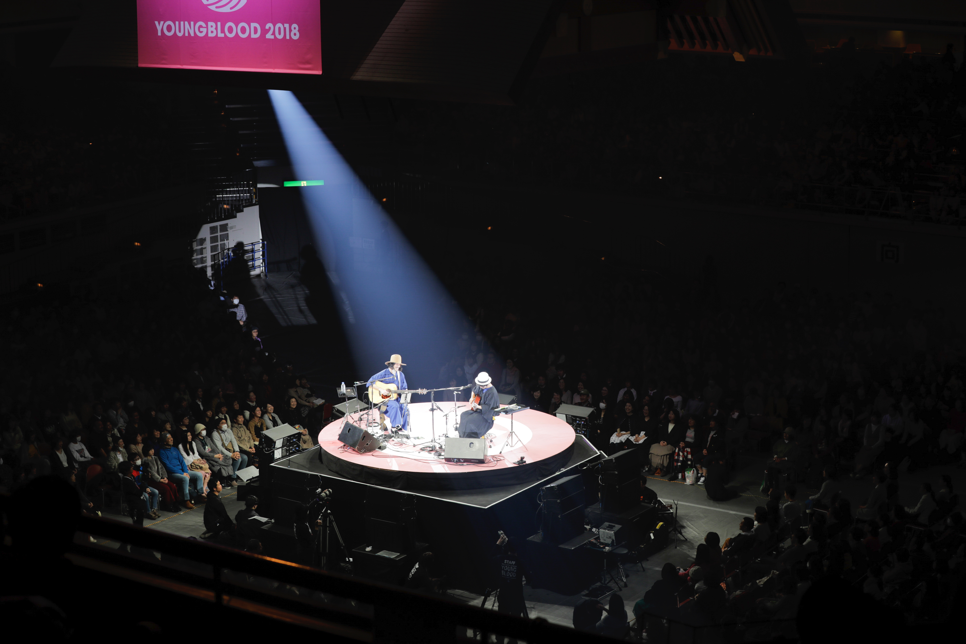 次に演奏されたのはサイモン&ガーファンクル「The Boxer」のカバー。穏やかな空気を醸しながら、音を愛でるようにハーモニーを紡いでいく。普段から大橋トリオのサポートメンバーを務めているTHE CHARM PARKとのコンビネーションはぴったりだ。ここでステージが回転。向正面を向いて披露されるのは大橋トリオの「そんなことがすてきです。」。THE CHARM PARKが手拍子を求めると、場内からは大きなハンドクラップが起き、国技館の一体感はどんどん高まっていく。
