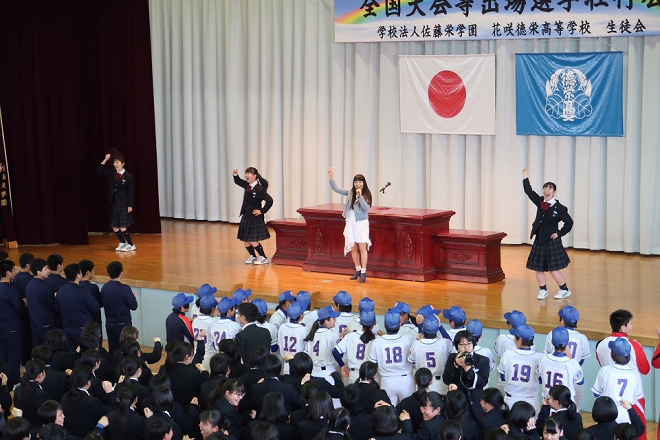 3月13日に埼玉・花咲徳栄高等学校で行われた全国大会壮行会に、サプライズでmiwaが登場した。