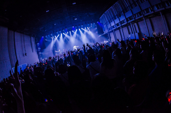 中盤に突入しても、まだまだ勢いは止まらない。虎(Gt)の速弾きのあと、そこにヒロト(Gt)が音を重ね力強いツインリードが炸裂していったドラマチックなヘヴィーチューン「the Arc」に続け、MVではメンバーが真っ白い衣装を着てパフォーマンスしていた「Spiegel」を連発。バンドアンサンブルがスリリングにからみあい、緊迫感あるプレイで聴かせていく濃密な2曲でフロアを圧倒したあとは、スピーディーな「開戦前夜」を畳み掛け、躍動感あるこの曲で全員でぶちあがるようにスパークしていった。