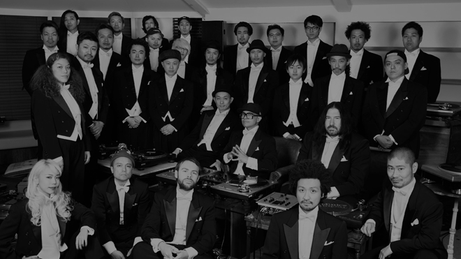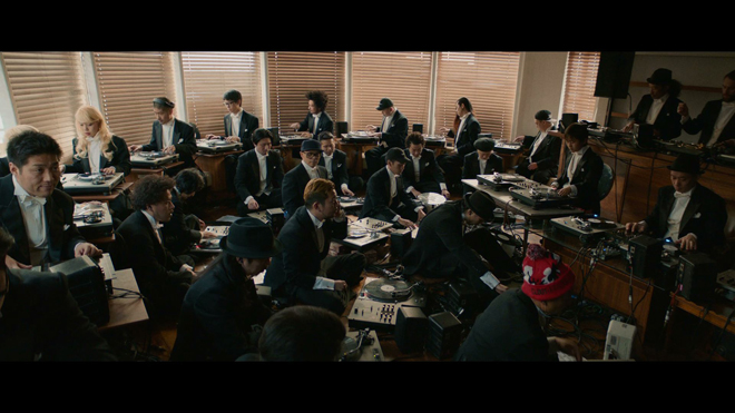 この度、都内のスタジオに集結したのは、総勢30名の世界屈指の“ターンテーブリスト”と呼ばれるDJたち。2002年アジア人初の世界チャンピオンであるDJ Kentaroはじめ、DMC World Championshipの過去の優勝者ら錚々たるメンバーが燕尾服に身を包んだ。