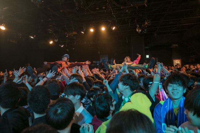 一緒に楽しい空間を作り、ますます仲を深めた超特急と男8号車。「明日からもがんばっていくみなさんを応援する意味を込めて、この曲を送ります」というタカシの声から、「Yell」を爽快に歌唱。そして、ハイテンションの高速ロックチューン「PAPAPAPA JUMPERS」で会場は一気にヒートアップ。ユーキとユースケは客席に2回もダイブを敢行した。「浮つきWAVES」で、会場全体でタオル回してライブの勢いはさらに加速する。燃え上がった超特急と8号車は、もはや暴走機関車のごとく止まらない。ラストチューンの「Burn!」でXポーズとジャンプの嵐となってライブ本編は終了。