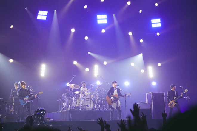後半では「and I love you」や「here comes my love」「himawari」などスケールの大きな楽曲を届け、「今年に入ってからのモチベーションはほぼこの日だった」という桜井がアコースティック・ギターを抱えてエレファントカシマシの「やさしさ」をワンフレーズ歌うと、最後はそのまま「名もなき詩」へ。「エレカシ最高!」の言葉を残してステージを後にした。