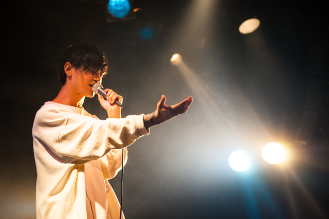 柔らかく優しいメロディにじわじわと上がるコーラスが秀逸な「夜の鼓動」や、イントロから飛び跳ねずにはいられないビートの「AAO」。心地良く印象的なギターとシンセのフレーズから始まる抜群のダンスチューン「Good-Bye」に、本家とはまったく違うアプローチで“躍らせる”ジャスティン・ビーバー「one time」のカヴァー……。1曲1曲を挙げていくと切りがないが、次々と演奏されるナンバーの個性溢れるサウンドメイクと楽曲構成には感心しながらも自然と身体を揺らさずにはいられない。