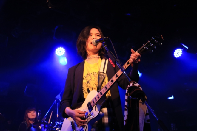 ツアー中に18歳になったというSAKIKA。自分自身が一段階大人になる節目に達したことを受けて「お父さんとお母さんに感謝を伝えようと思って作った曲があります」と語り、「聞いてほしいこと」を披露する。上京してあらためて両親のありがたみを噛みしめたという素直な想いが伝わる演奏だった。そのあとは「2年前に上京してメンバーと共同生活をするようになって、メンバーのいいところももちろん悪いところも見えたけど、この4人じゃなきゃあかんなって。どんなに壊れかけても、この4人で進んでいこう――そんな想いが強くなりました」とSAKIKAが語り4人で「ヨンソク」を歌い上げる。本編の最後は「この4人と、みなさんと歩いていきたい」と想いを告げ、ここからさらに加速していくという野心いっぱいに「一直線」を届けた。