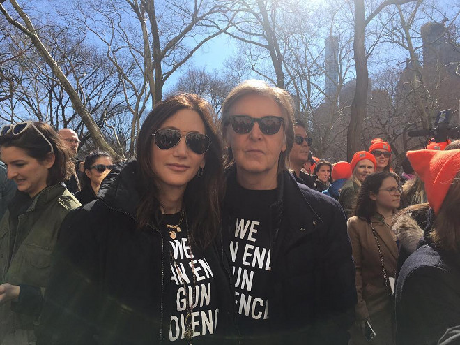 ポールは夫人と共に、「WE CAN END GUN VIOLENCE(僕らは銃による暴力を終わらせることができる)」と描かれたTシャツを着用し、ニューヨークで行なわれたデモに参加。CNNに呼び止められ、コメントを求められると、「(銃による暴力を完全になくせるか)わからない。でも、これが僕らにできることだ。だから、僕はいまここにいる。僕の親友の1人が、このすぐ近くで銃の暴力により殺された。だから、これは僕にとって重要なことだ」と話した。