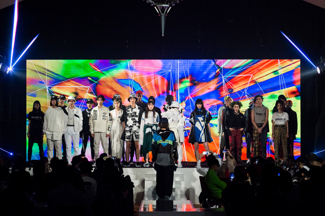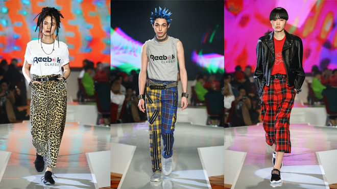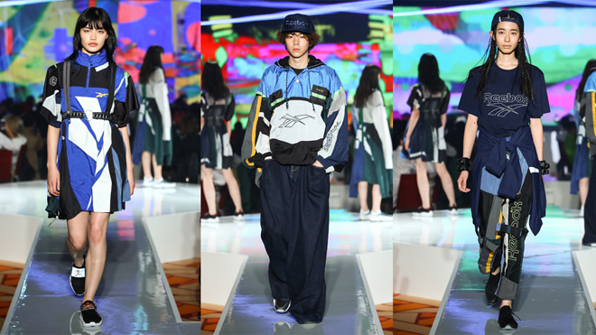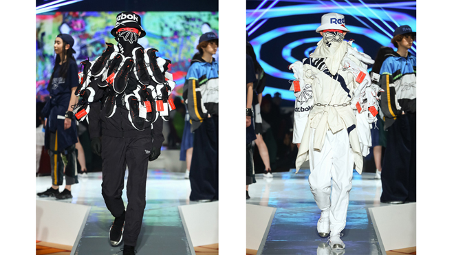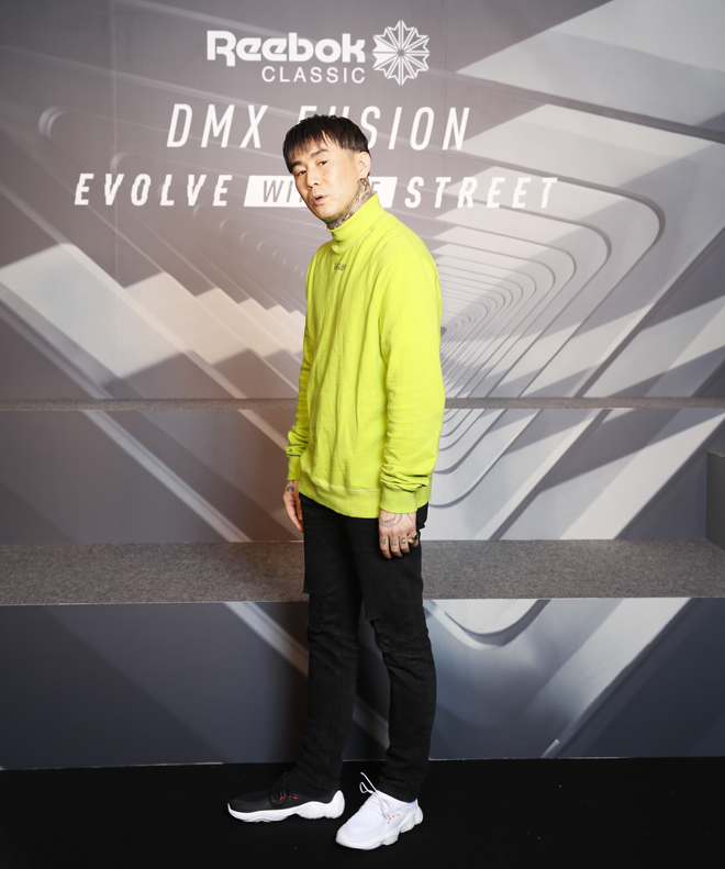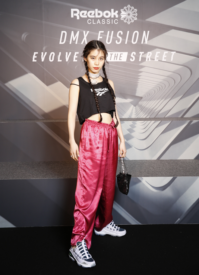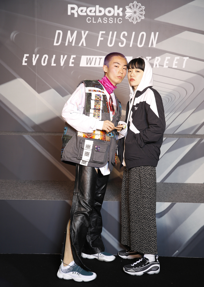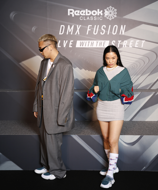 “東京ストリートカルチャー”を一夜限定のパーティーに凝縮させたスペシャルイベントである、<DMX GALA PARTY 〜EVOLVE WITH THE STREET〜>。カクテルタイムでDJ Yukibebがプレイしたのち、メイン会場では、ディナーパーティーの幕開けとともにReebok CLASSICの最新アパレルと“DMX FUSION”&“DMX RUN 10”のシューズを組み合わせたファッションショーがスタートした。モードなブラック&ホワイトのスタイリングから、ネオスポーツスタイル、パンクスタイル、ヴィンテージスタイルへとショーは展開していき、最後はこのイベントの為に制作されたオリジナルデザインのアパレルと、“DMX FUSION”を組み合わせて制作された“SHOES MONSTER”も登場し目が奪われてしまった。高いクオリティーのファッションショーに、来場者からは拍手とともに大きな歓声が上がったことは言うまでもないだろう。