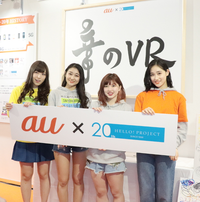 なお、ホールではさらにその後au「音のVR」ブースでの発表イベントも行われ、アンジュルムの和田彩花、竹内朱莉、佐々木莉佳子、モーニング娘。’18の譜久村聖の4人が登場。世界初となる音のVR体験に実際にふれはしゃいだ様子を見せた。このVRは360度の音と映像に対し、気になる部分を自由にズームすることができるというもの。収録モデルでは破天荒なアンジュルムメンバー達の室内での様子と、モーニング娘。’18による「I WISH(updated)ver.」歌唱などを楽しむことができる。