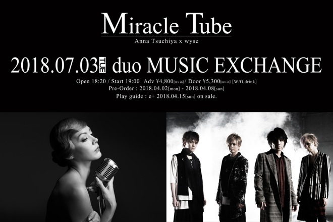 wyseが7月3日、土屋アンナとのツーマンイベント<Miracle Tube>を開催することが発表となった。
