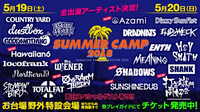 <SUMMER CAMP 2018>、出演者最終発表にHawaiian6や打首獄門同好会など7組