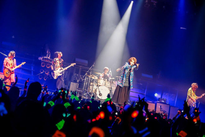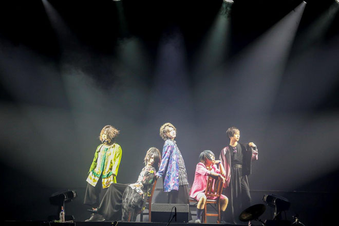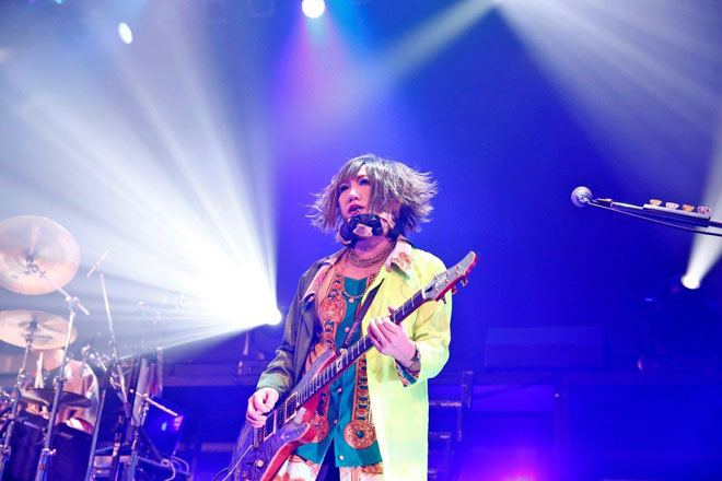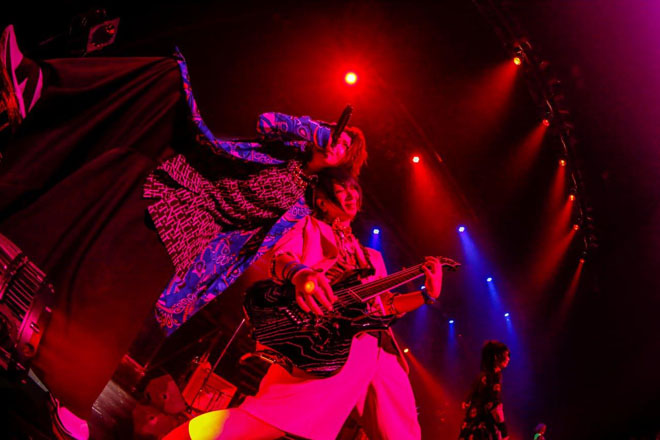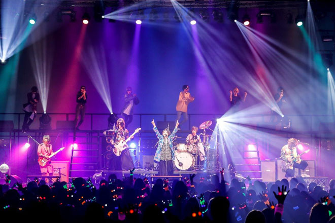 「HELLO!Zepp DiverCity。一緒に8年目の一歩を繰り出そう。会いたかったよ、準備出来てるよね!」結(Vo)の第一声に場内の熱気が高まるのがわかる。そんな中で披露された「universe」はどこまでも力強い演奏が印象的だった。フロント陣が一斉に前に出て華やかな様子を見せた「イオ」では「後ろまでちゃんと見えているからね!」と優しさを覗かせる一面も。